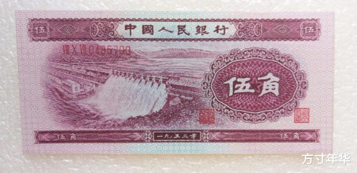 水坝5角是第二套人民币中的,1955年3月1日发行,到1973年停止发行,发行时间也不短,加上70年代初人们的收藏意识没有那么高,导致央行发布回存公告时,很多人都回存银行了,也导致现在存世量是5角纸币中最少的。